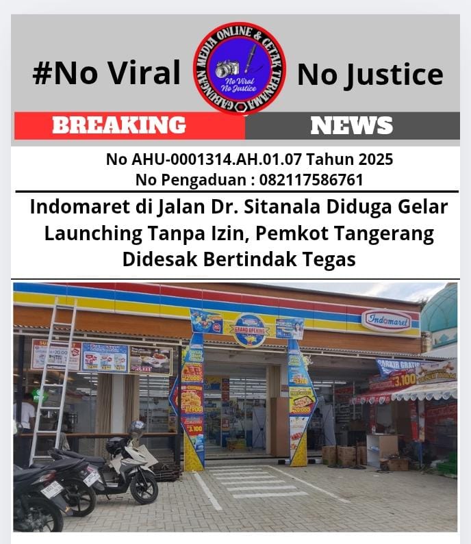 TANGERANG, kabarSBI.com (GMOCT) – Kegiatan launching gerai Indomaret di Jalan Dr. Sitanala, Kota Tangerang, menjadi sorotan tajam setelah diduga belum mengantongi izin usaha toko modern (IUTM). Informasi ini pertama kali diungkap oleh Bentengmerdeka.com, yang kemudian dikonfirmasi dan disebarluaskan oleh Gabungan Media Online dan Cetak Ternama (GMOCT), tempat Bentengmerdeka.com bernaung.