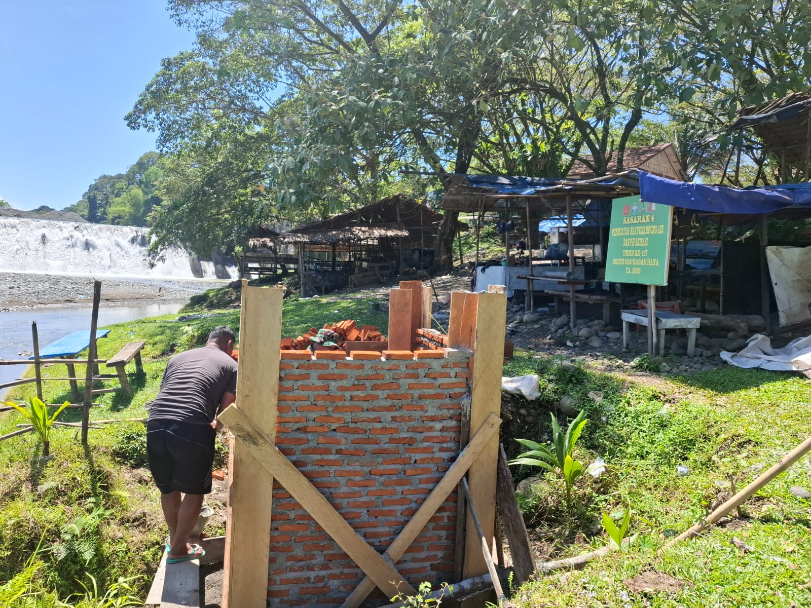 Ia menambahkan, pengerjaan saat ini telah memasuki tahap pemasangan bata pada dinding bak penampungan sebelum dilanjutkan ke tahap berikutnya.