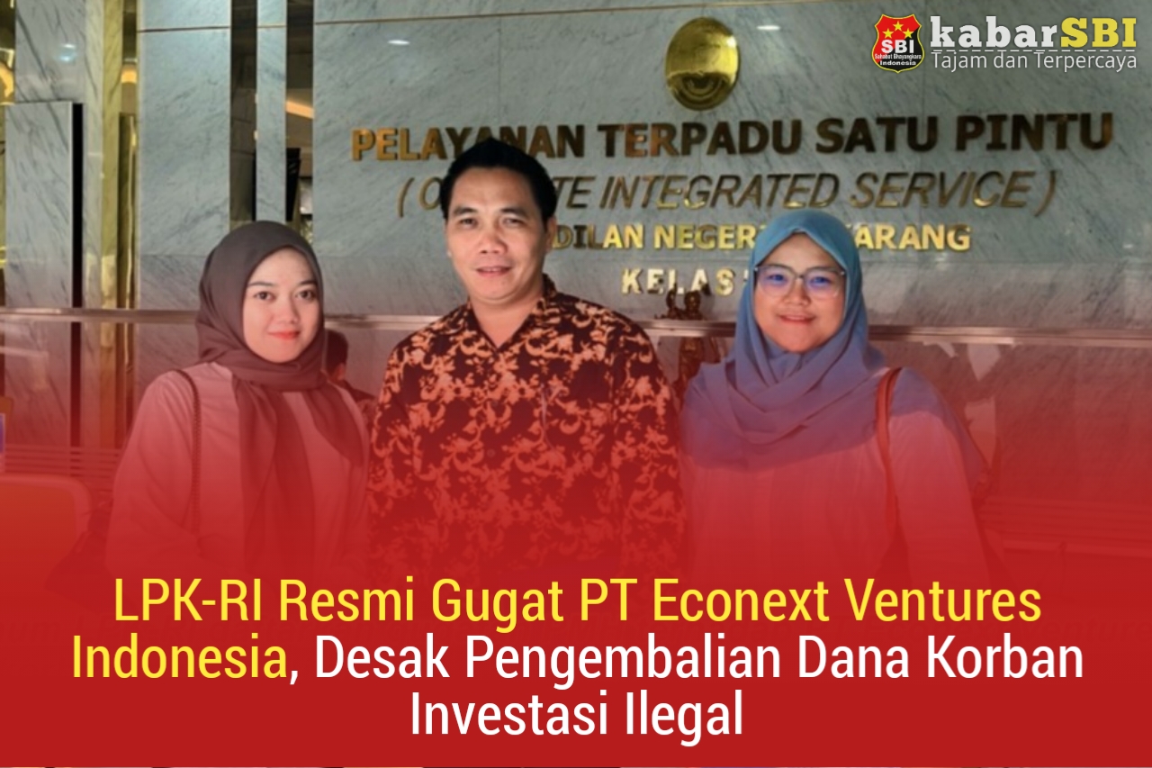 LPK-RI Resmi Gugat PT Econext Ventures Indonesia, Desak Pengembalian Dana Korban Investasi Ilegal 1JAKARTA, kabarSBI.com – Lembaga Perlindungan Konsumen Republik Indonesia (LPK-RI) secara resmi melayangkan gugatan Perbuatan Melawan Hukum (PMH) terhadap PT Econext Ventures Indonesia di Pengadilan Negeri Cikarang, Kabupaten Bekasi.