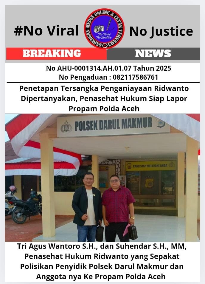 Seperti diketahui, Ridwanto ditetapkan sebagai tersangka dugaan penganiayaan setelah diduga melakukan pemukulan terhadap Muslem bin Syamaun. Kini, PH Ridwanto akan membawa perkara ini untuk dilaporkan ke Bid Propam dan Paminal Polda Aceh. Hal ini menjadi tantangan bagi Bid Propam dan Paminal Polda Aceh untuk menjawab keraguan publik serta membuktikan etos Presisi Polri dalam melayani masyarakat.