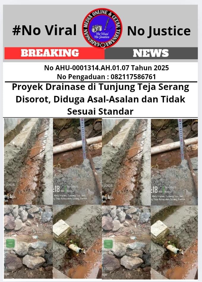 Proyek Drainase di Tunjung Teja Serang Disorot, Diduga Asal-Asalan dan Tidak Sesuai Standar 1SERANG, kabarSBI.com (GMOCT) – Proyek pembangunan drainase sepanjang 98 meter di Kp. Tunjung Pasar RT.03 RW.01, Desa Tunjung Teja, Kecamatan Tunjung Teja, Kabupaten Serang, Banten, menuai sorotan tajam. Proyek yang menelan anggaran Rp. 108.011.828,- dari Sumber Dana Desa (DDS) tahun 2025 ini dikerjakan secara swakelola oleh Desa Tunjung Teja, namun kualitasnya dipertanyakan.